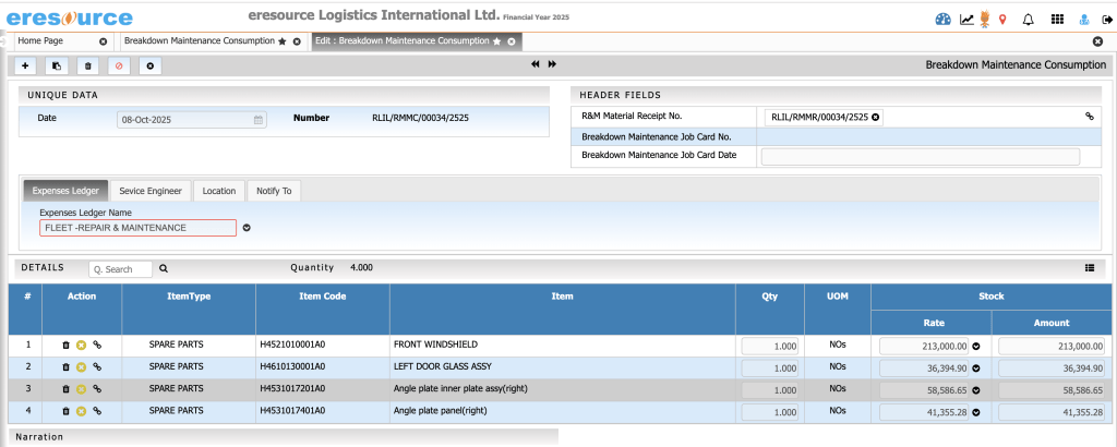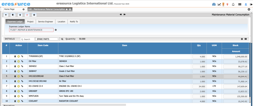 • Spare parts consumption tracking
